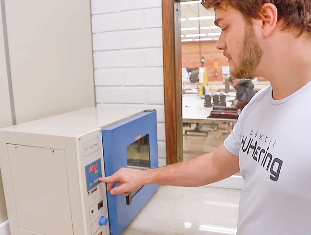 Em um laboratório avançado e com equipamentos de alta tecnologia, unimos ciência e tecnologia para realizar testes dimensionais, de solidez, peeling, atrito, PH, gramatura e acompanhamento de cores em cabines de luz. Um rigor técnico que assegura resultados confiáveis e produtos de máxima excelência para marcas exigentes.